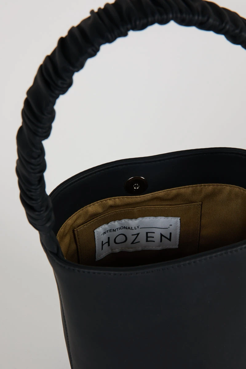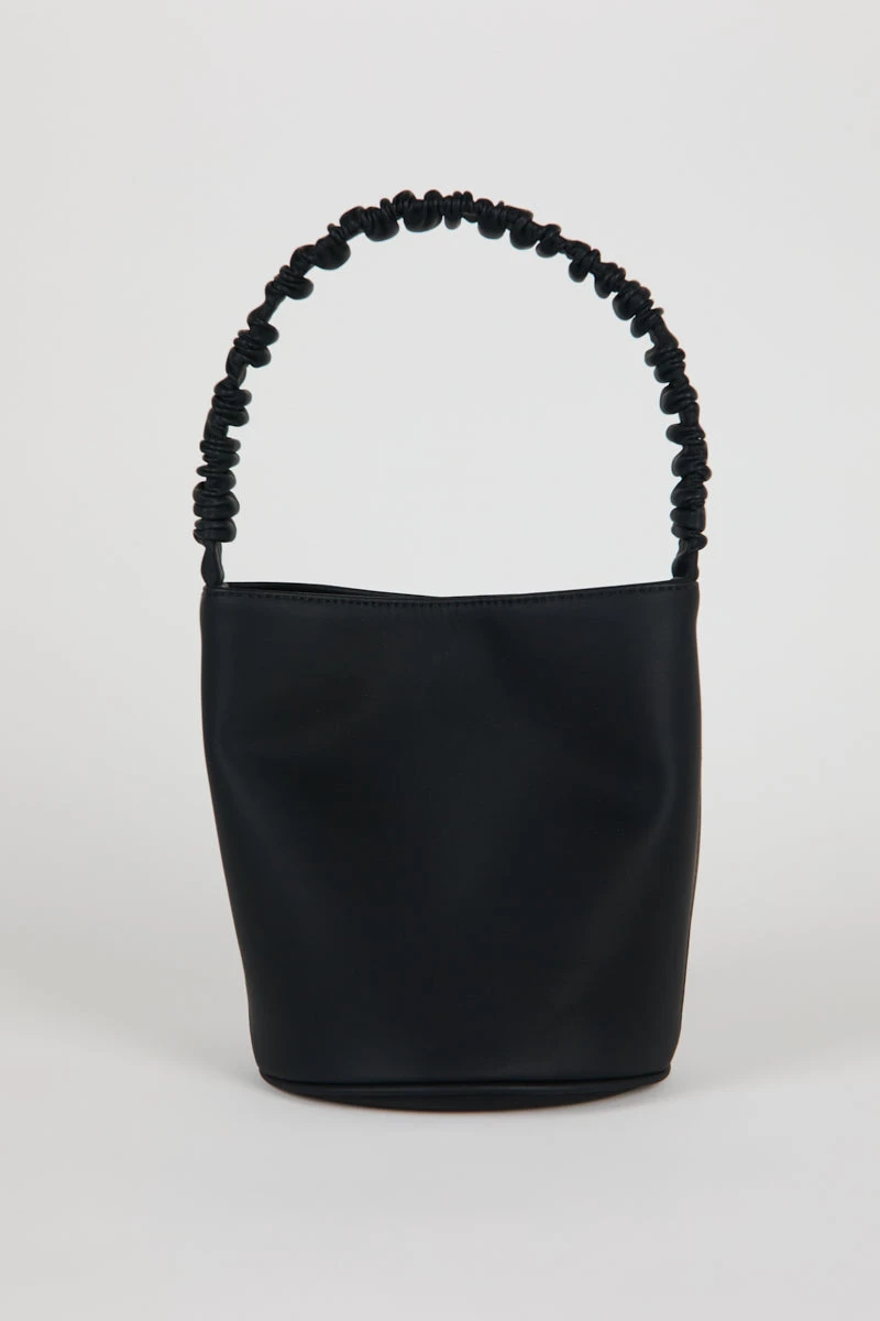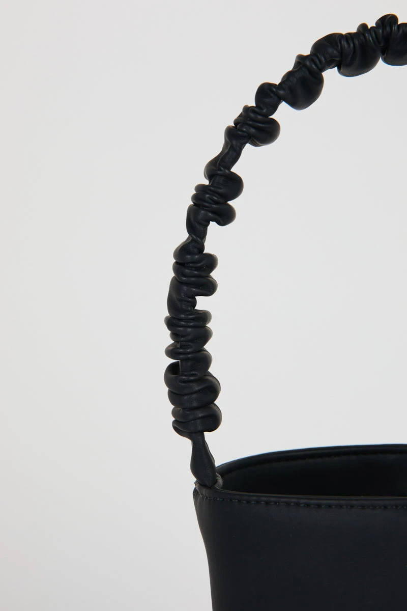 The Scrunchie Bucket is our limited edition, collaboration vegan bucket bag with a scrunchie-style handle that matches the accompanying Phorna Scrunchie Flatform. We love the pops of color, and of course the severity of the minimal all black version.