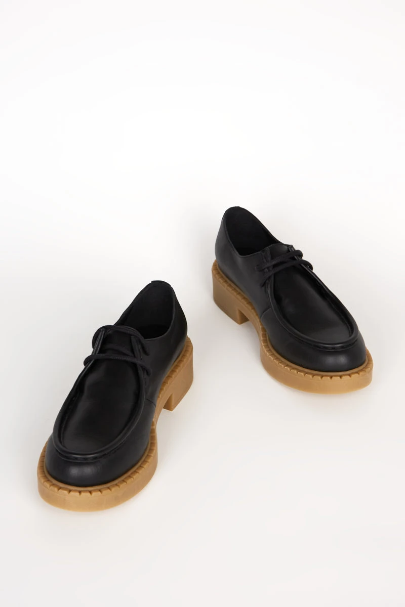 90’s inspired lace up reimagined and made fresh with a leather upper, cushioned footbed and chunky sole.