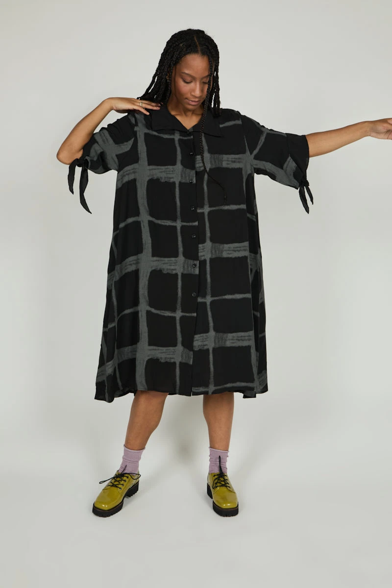 - Slightly Assymetrical Hemline, Tie Detail on Sleeve, On Seam Pockets