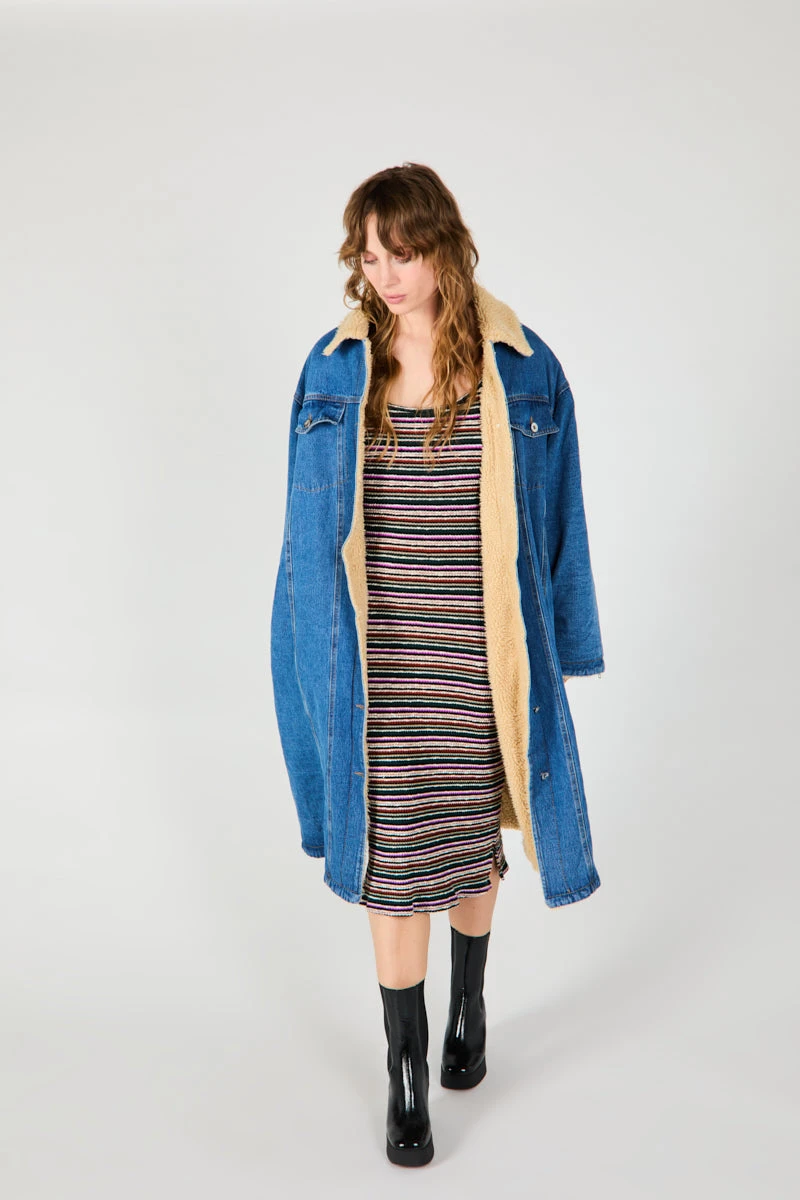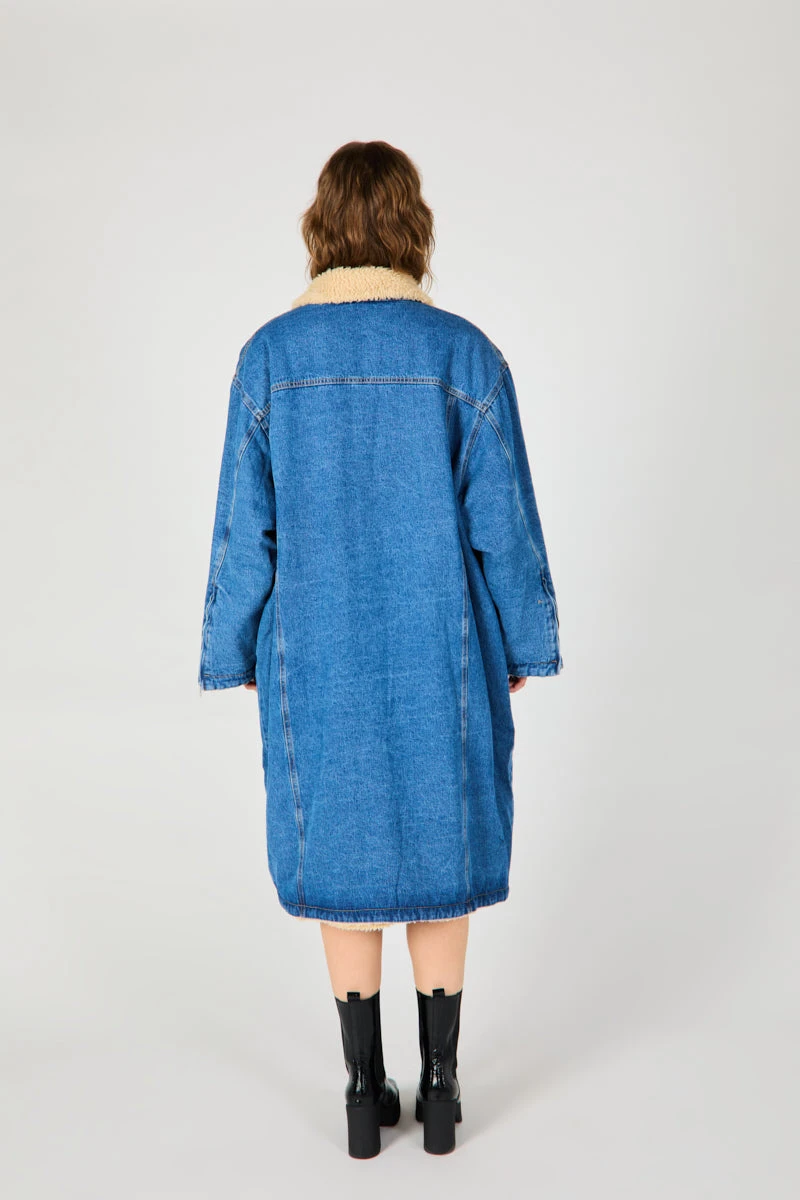We love this vintage inspired sherpa lined jean jacket, re-imagined into a parka length coat. The HUGO is cozy and cazual perfect for styling and layering over your fave sweater.