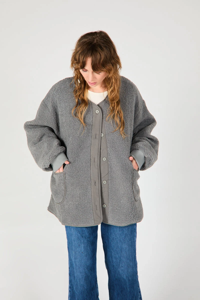Inspired by a vintage shell liner from a military jacket, this button up is the perfect layering piece to keep you cozy (fully lined) without scrimping on style. Available in two colors, we love the nod to the masculine, the high neckline and all the styling options.
