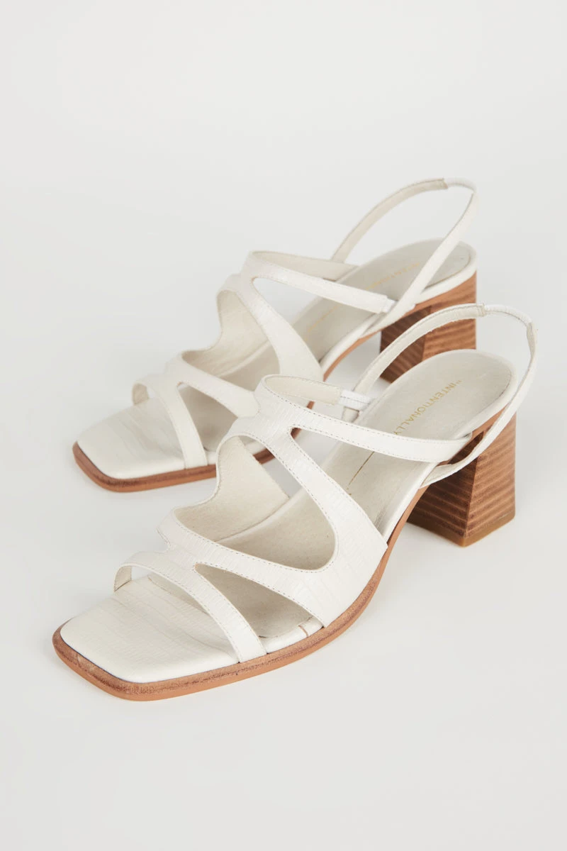 Vintage inspired strappy, summer sandal, this flattering heel is perfect with jeans, dresses, or a bare leg and shorts. We love the versatility and the high femme details.