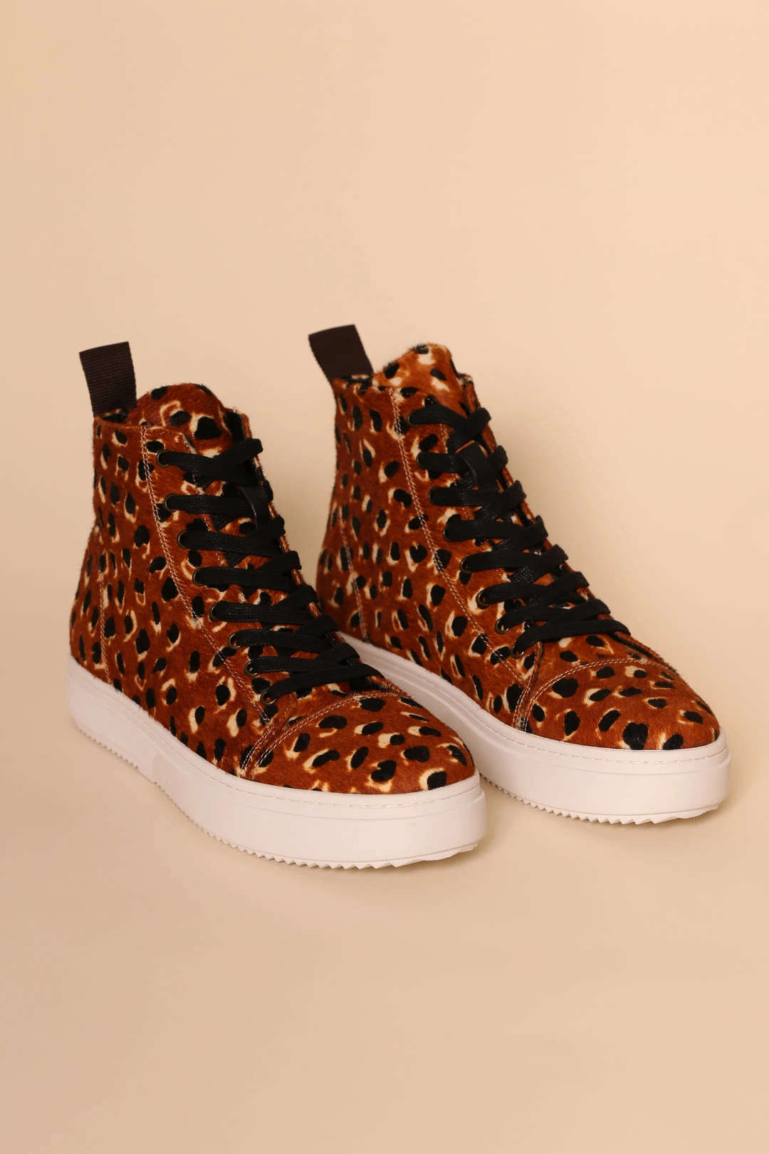 MEET JAKE: Our over the top high top, in tan cheetah pony, with an oversized crisp white sole.