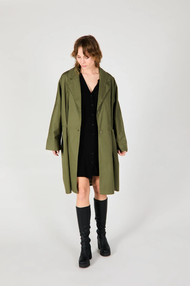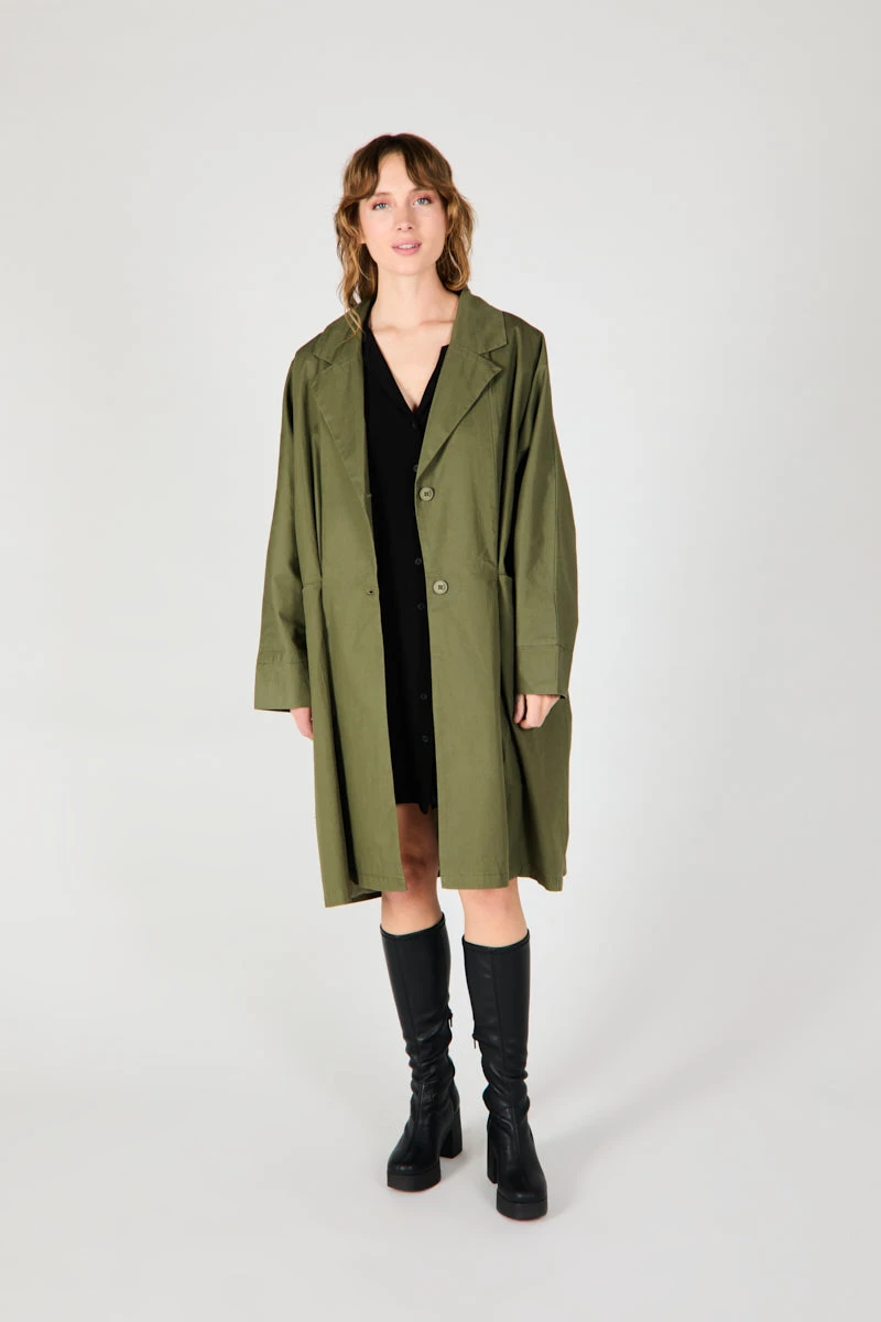 Vintage inspired in styling, then made modern with a relaxed fit and the perfect army color, this is a peice that can easily be dressed up or kept casual with jeans and boots.