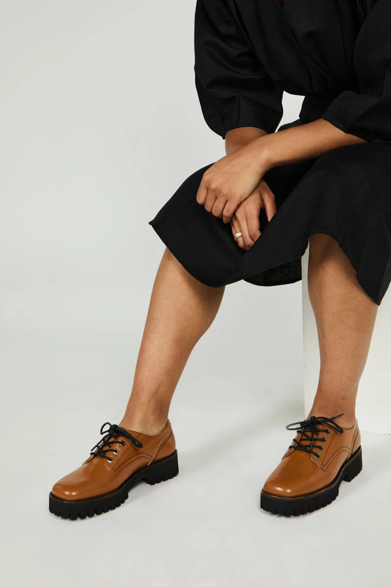 Minimal in all the right ways, our patent leather lace up is the ideal shoe for both fashion and function. Easy to style, the patent material and pop of stitch give this shoe just enough pop.