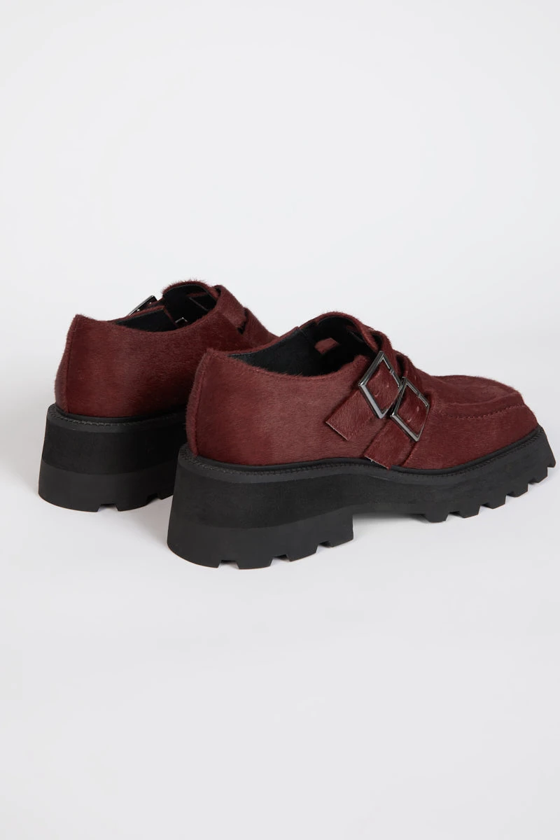A shoe that really measures up. Double buckle, 90’s inspired oxford in unexpected pony hairs, all on top of the perfect chunky outsole. Yes, please.