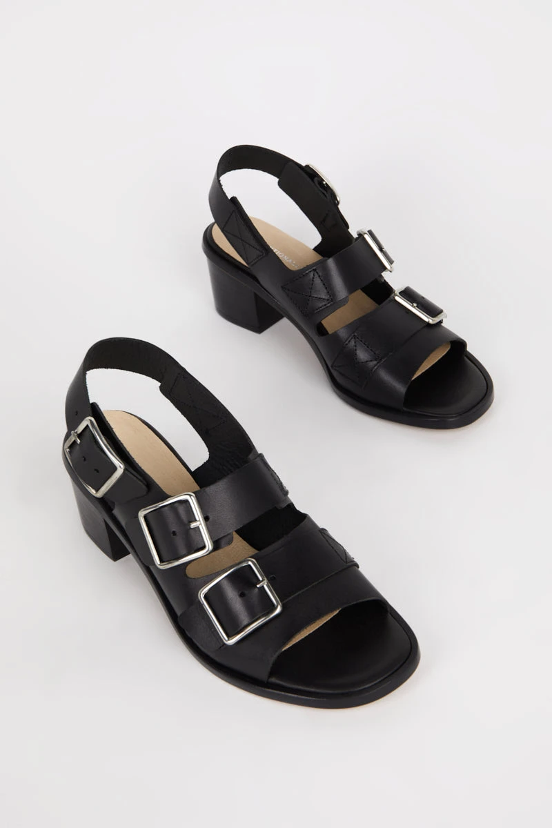 Our favorite quirky buckle sandal. Low heel, extreme comfort and perfect fit.