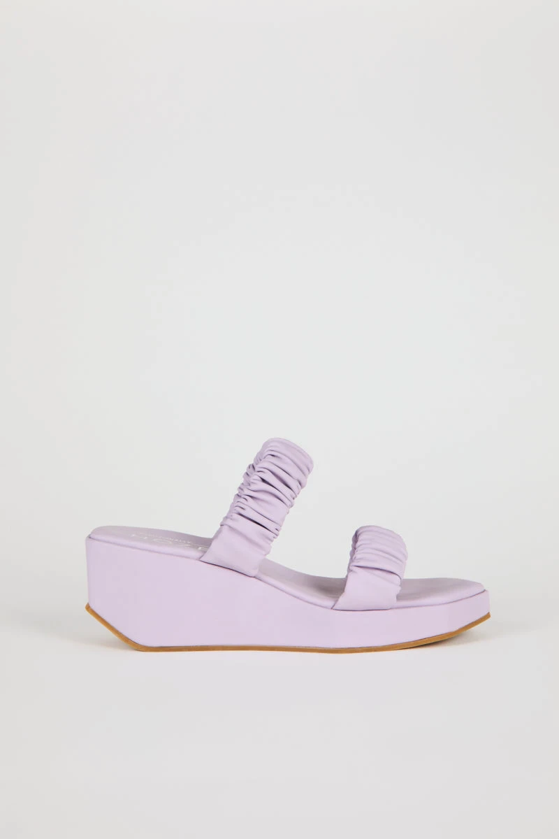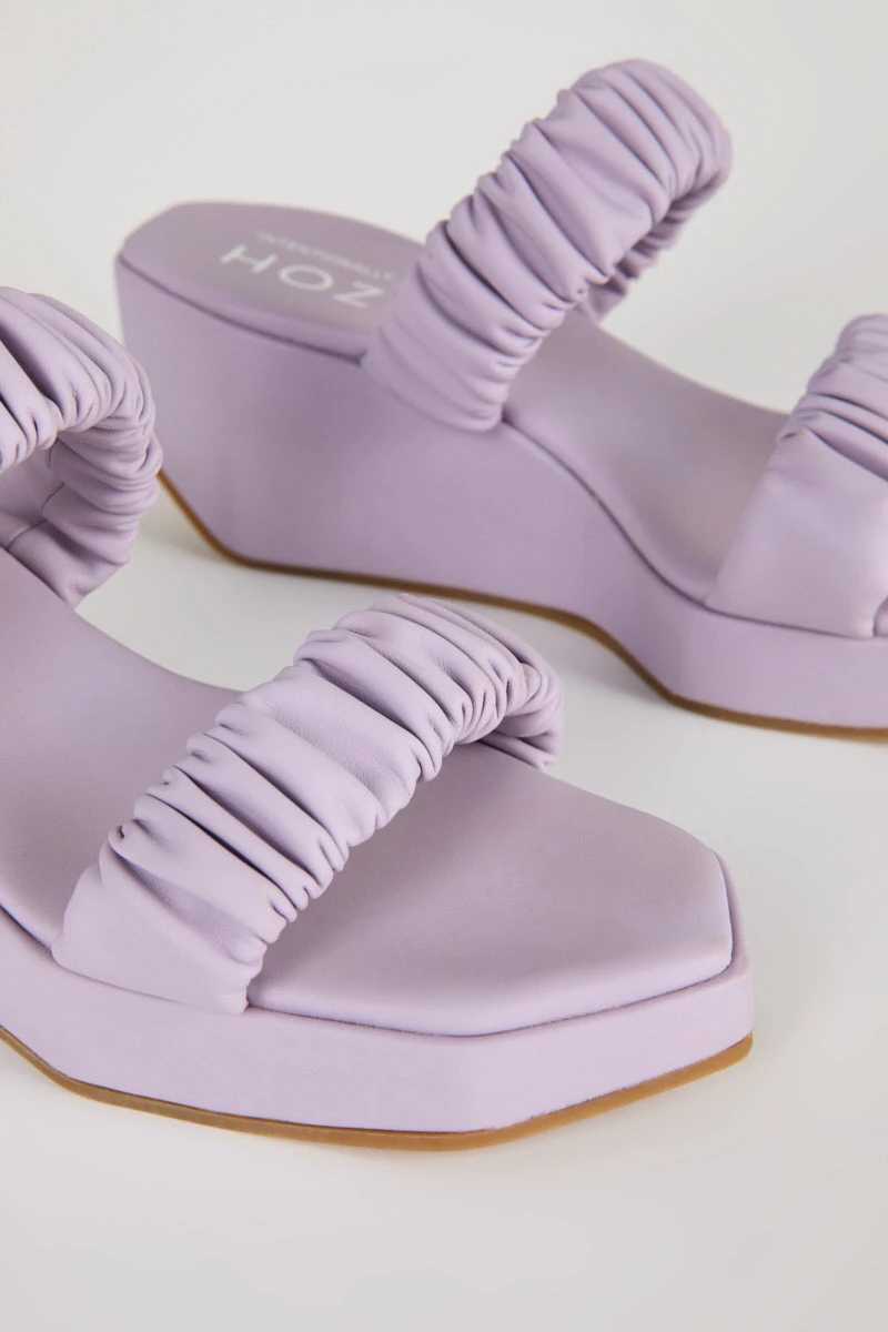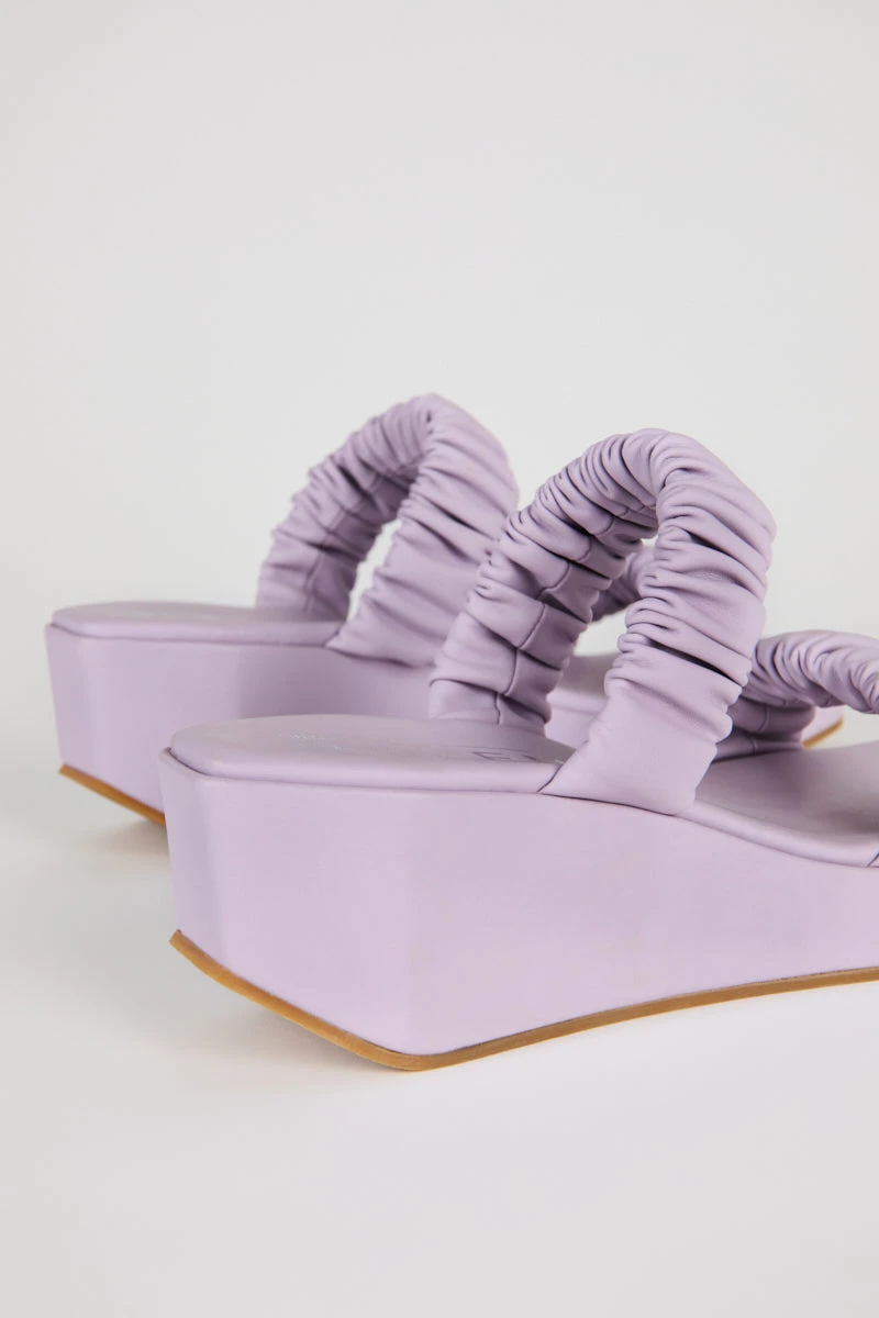 The PHORNA structural flatform has a fresh modern shape, with scrunch inspired straps which hold the foot perfectly on a memory foam padded sole (and match the straps to the accompanying bag perfectly!) We love the pops of color, and of course the severity of the minimal all black version. This shoe marries our principles perfectly, while putting some pep in your step.
