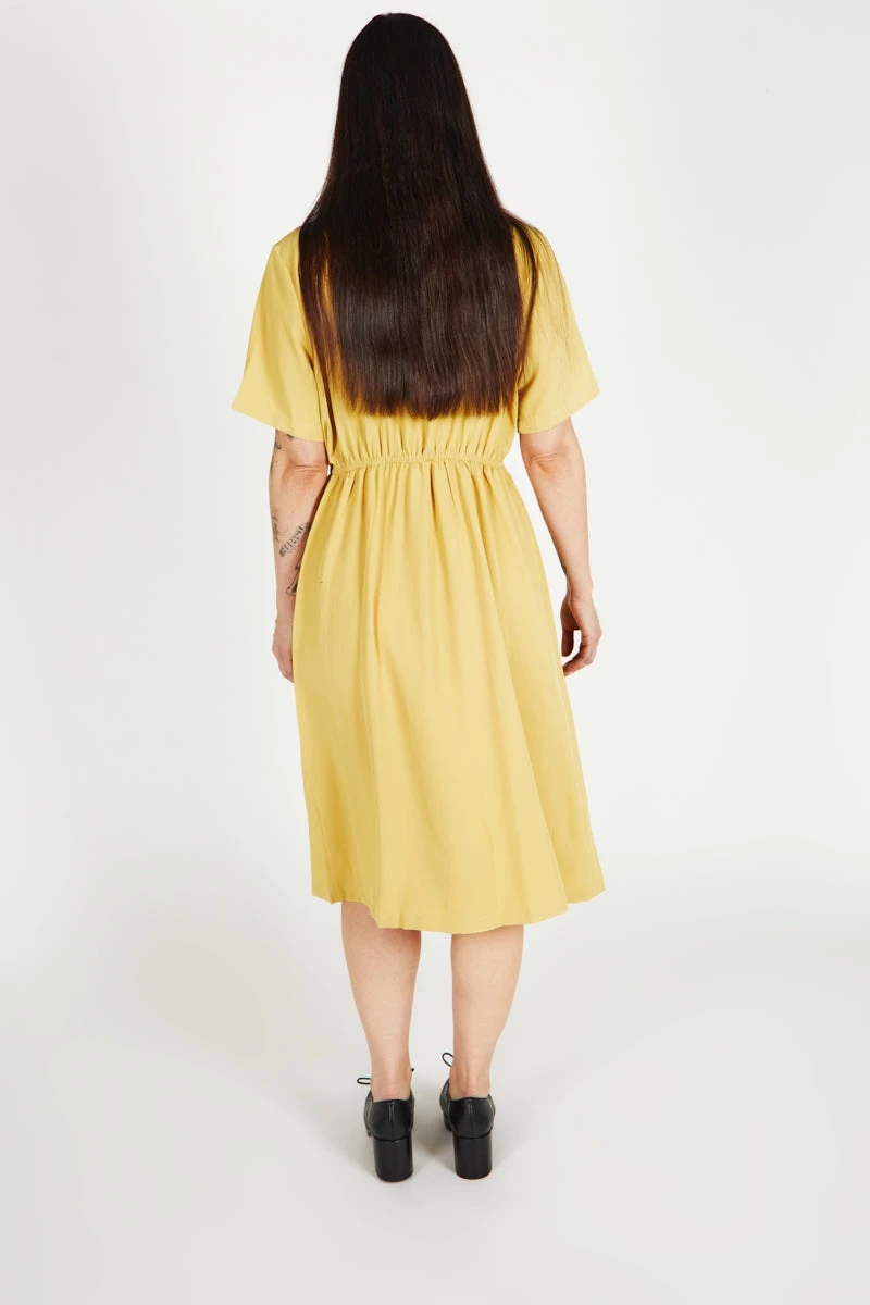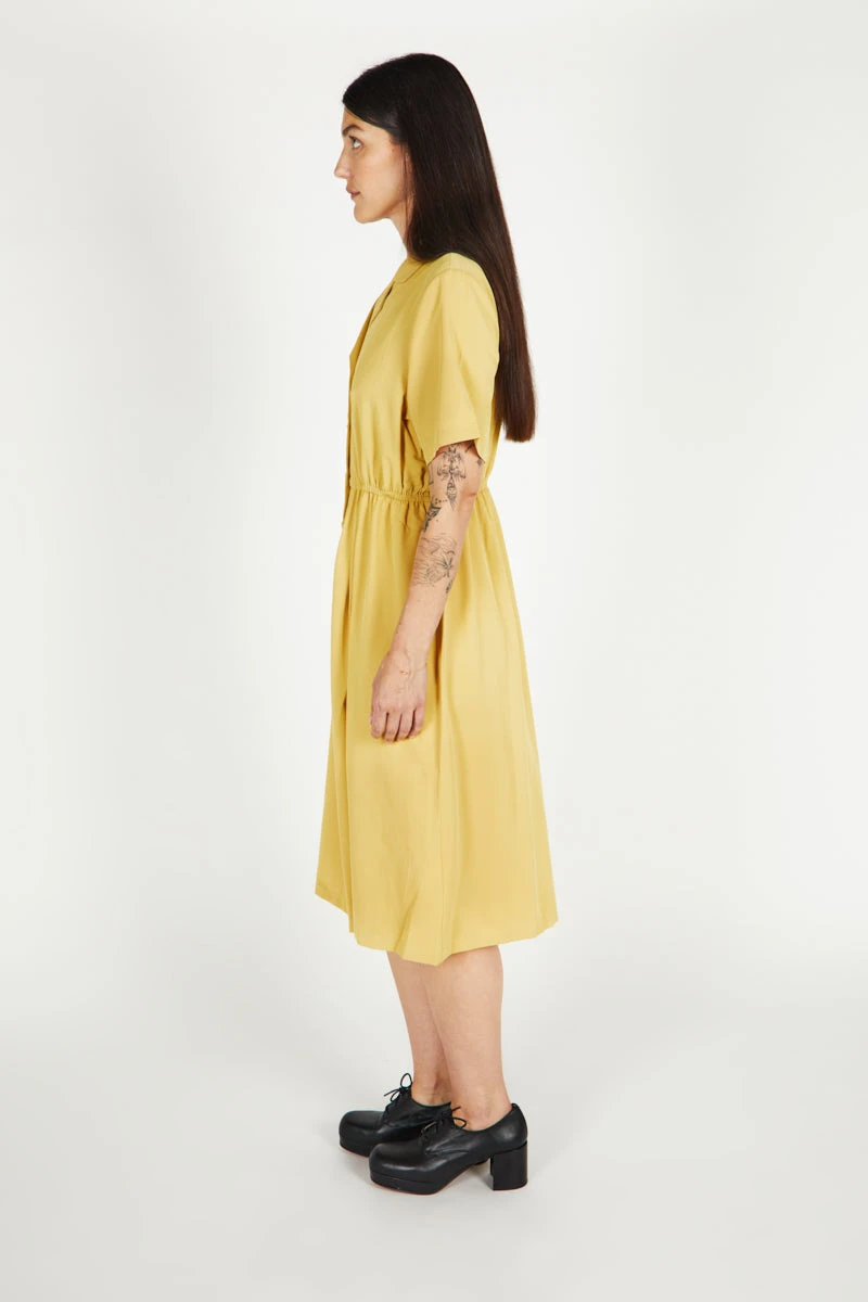 Vintage inspired, this double Breasted dress is serving all the 90’s vibes you want, but in a super current color, and lots of flowy movement.