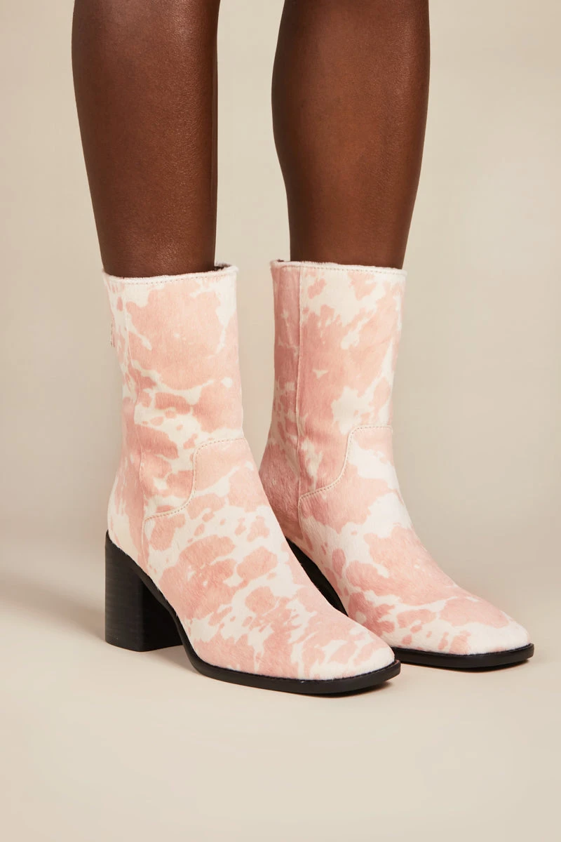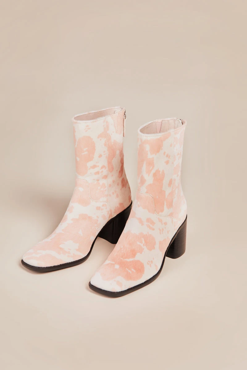 MEET PG: Our iconic moo print boot. Like all cows, all cowhides are unique! The prints on these boots do not match entirely and this is 100% intentional. Please note any differences in placement of spots, is organic and part of the design.